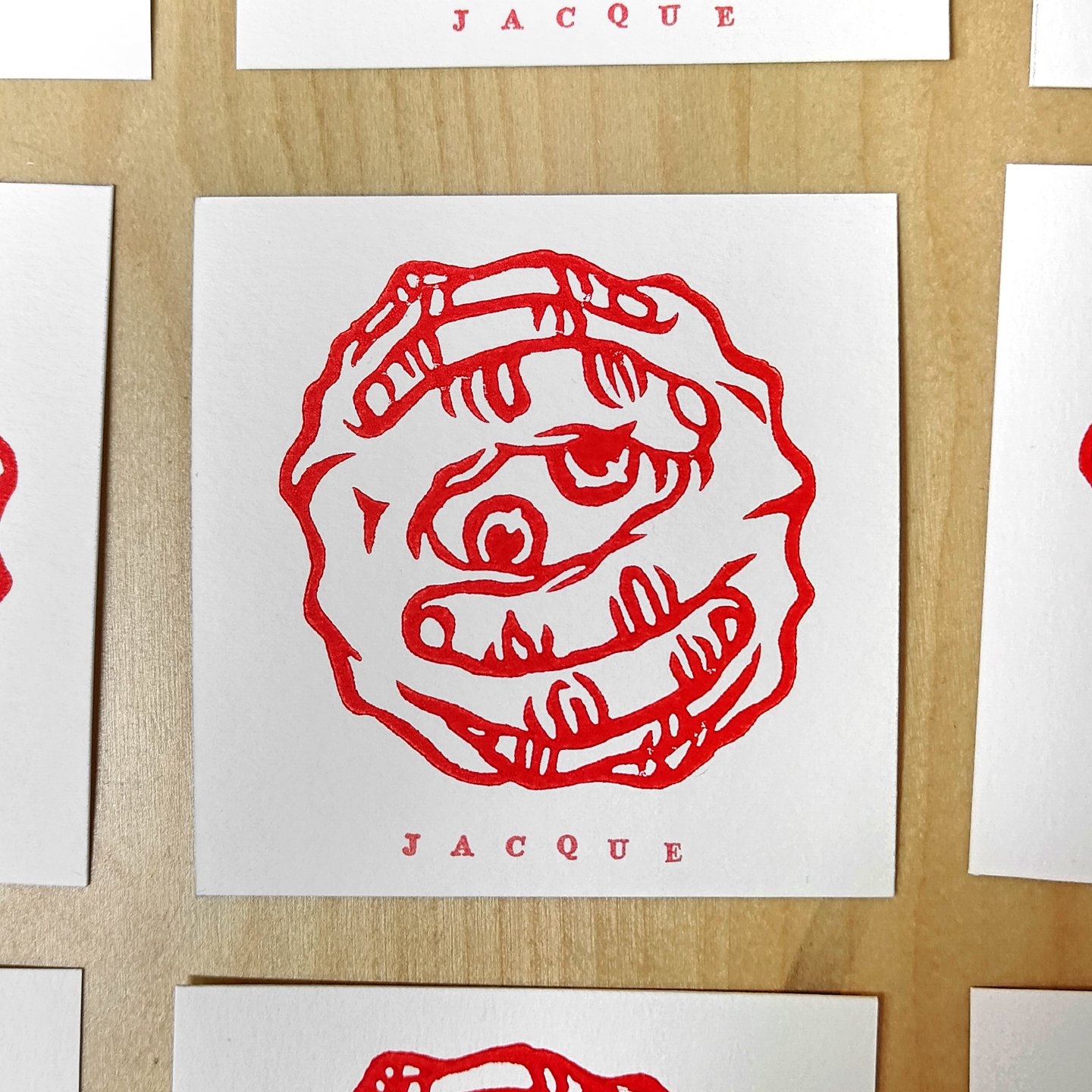 Linogravure réalisée à l'encre rouge, tirage limité de 28 exemplaires.