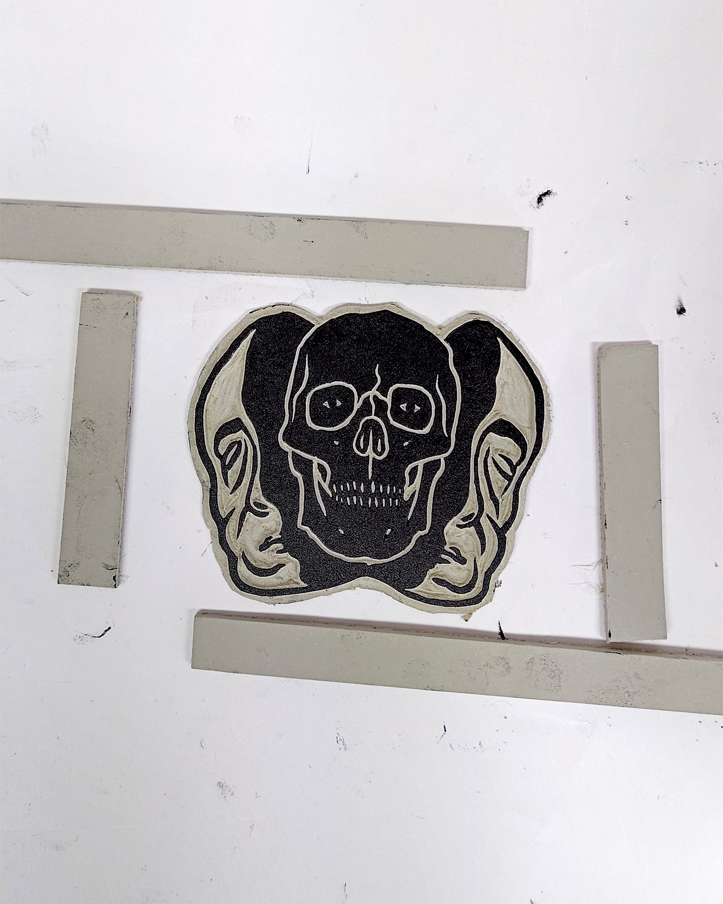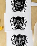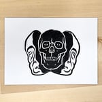 Linogravure réalisée à l'encre noire, tirage limité de 8 exemplaires.