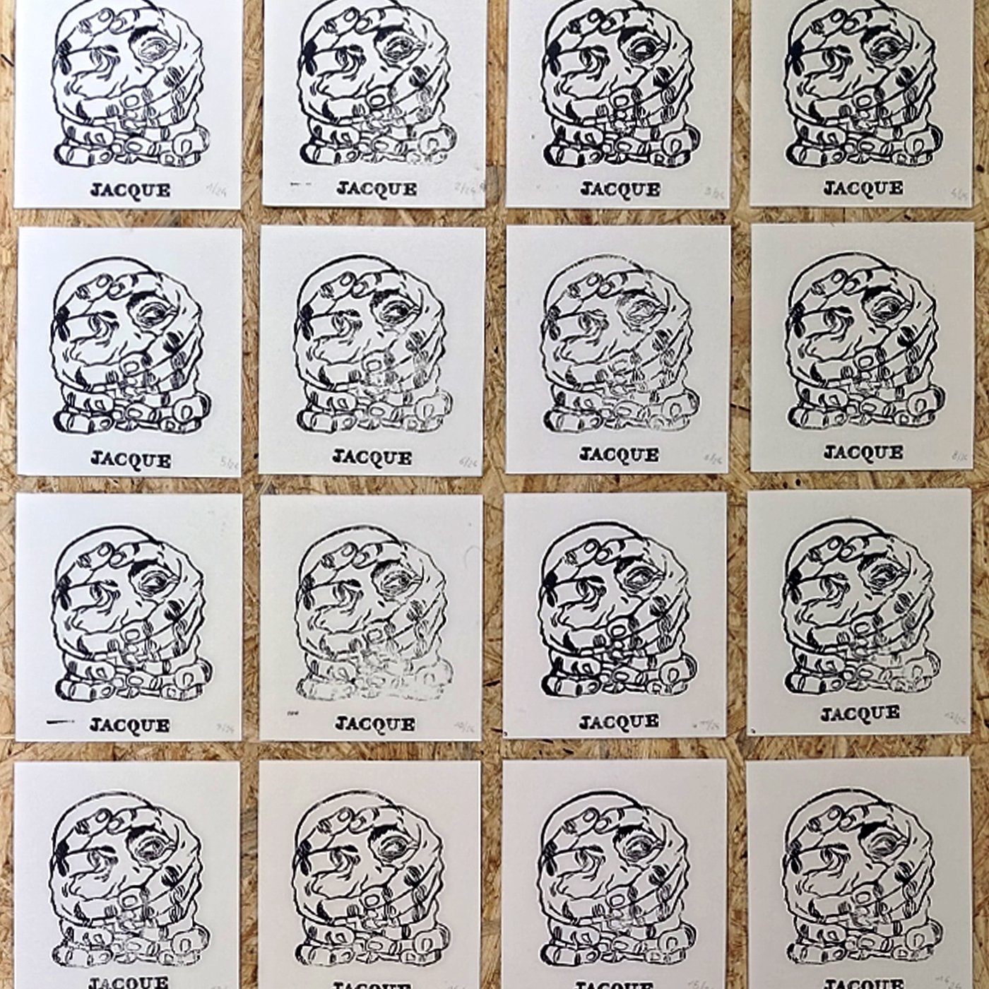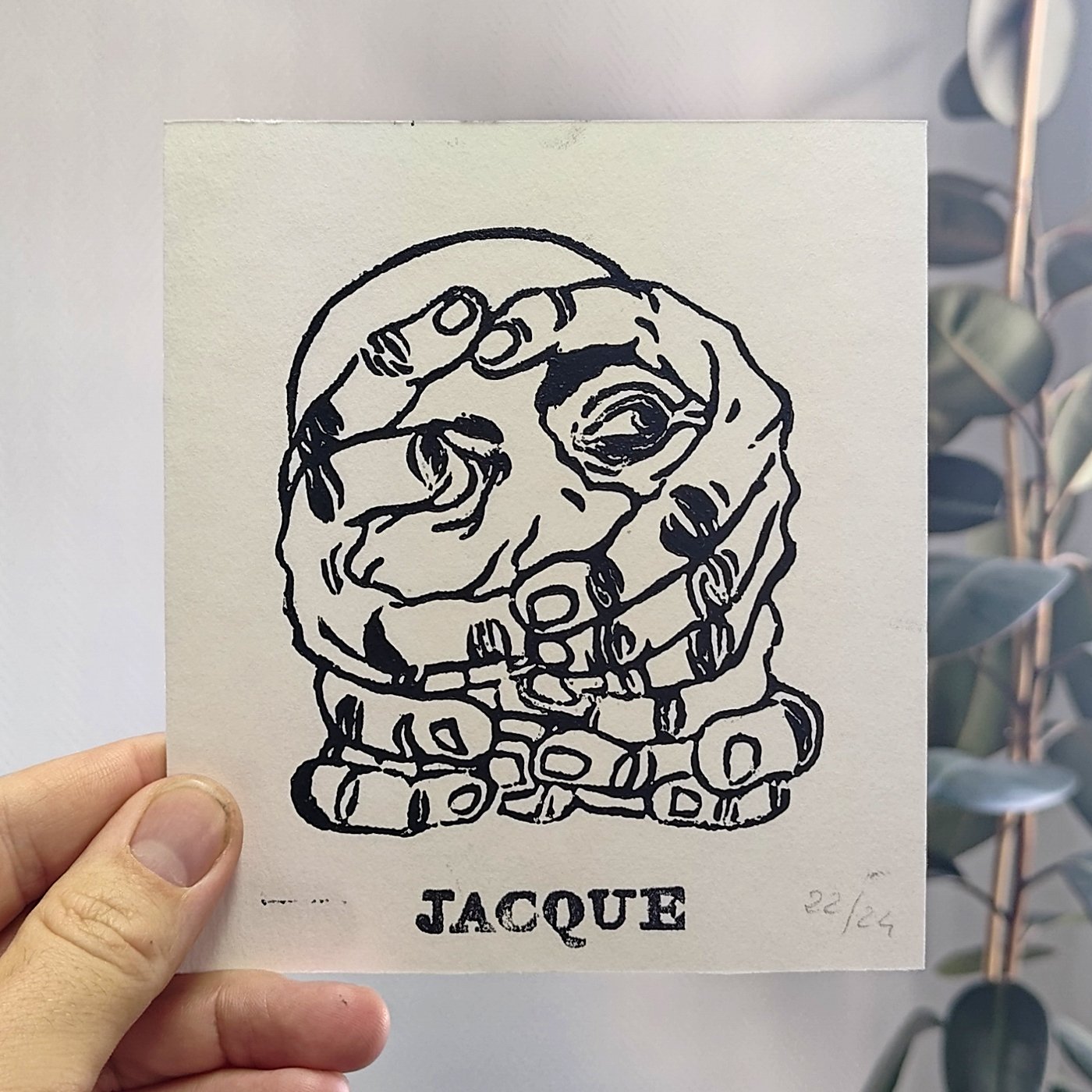 Linogravure réalisée à l'encre noire, tirage limité de 24 exemplaires numérotés.